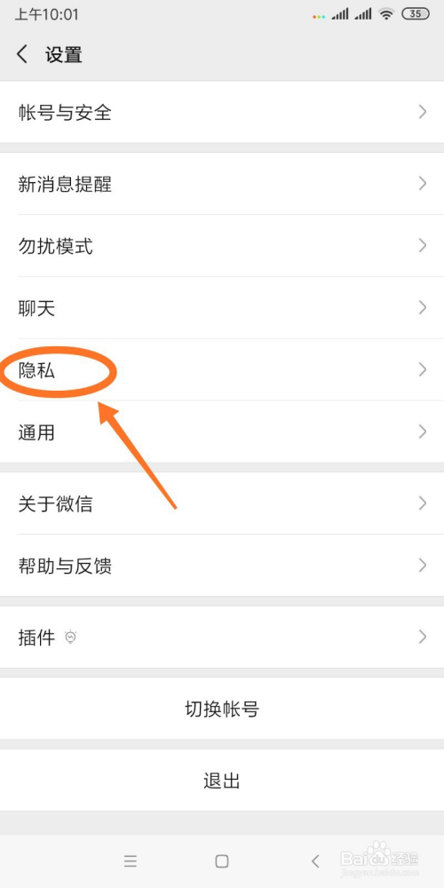 - 3在“设置”页面找到第五个选项——隐私,然后点击进入即可。