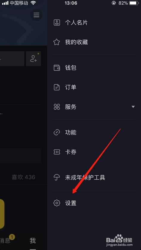 点击之后,会弹出就一个侧面弹框,选择此中的“设置”,进入抖音的系统设置,如图所示。
