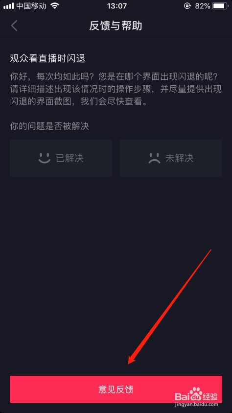 进入闪退问题之后,选择你碰到的问题场景,好比看直播时闪退,如图所示。