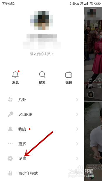 点击打开仗山小视频,我们需要在左上角点击我们的账号头像。