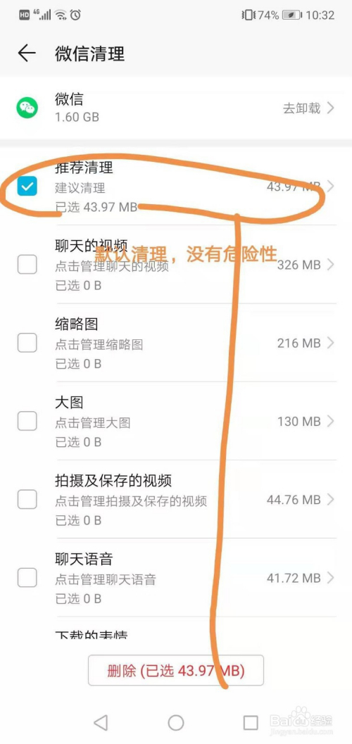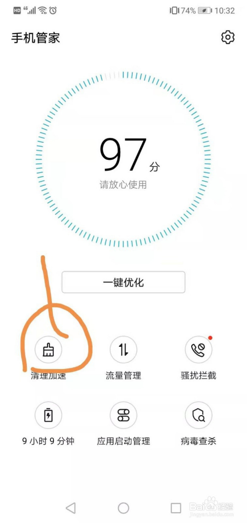 进来后页面会默认勾选‘保举清理’部门,这部门是不会敌手机造当作平安威胁的,可直接删除