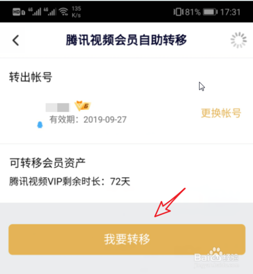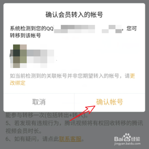 点击后页面会显示本身的绑定的账号信息,点击确认转移。