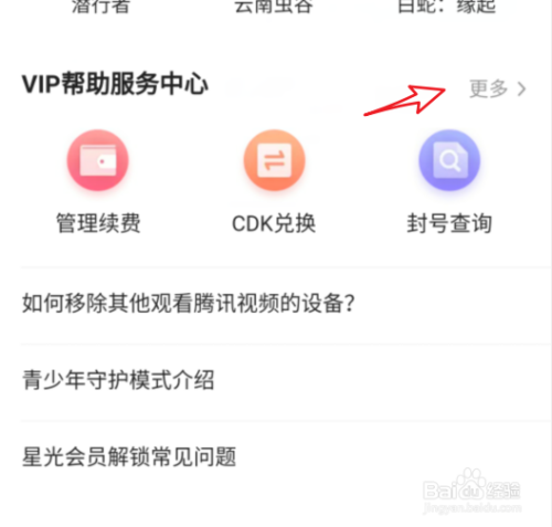 鄙人方的VIP会员办事中间中,点击更多的选项。