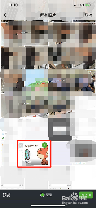 第四步:在手机相册中找到方才保留的动态脸色,注重勾选“原图”,然后发送给微信老友;