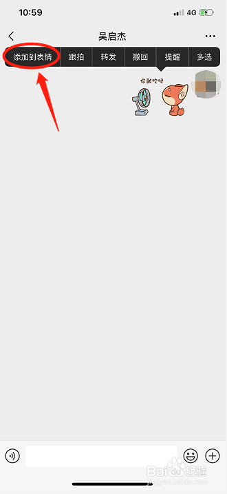 第五步:在微信老友聊天记实中,点击方才发送的动态图片,将它添加到微信脸色。