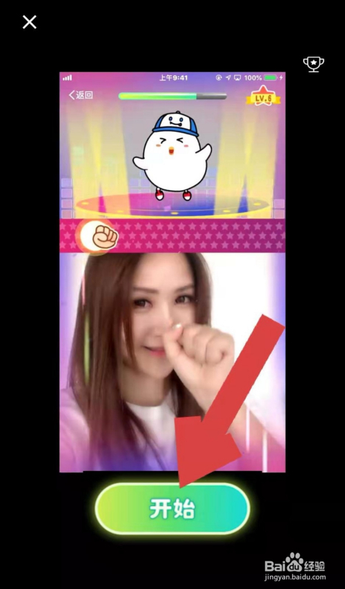 进入手保健操活动页面,首先要手势识别,按照页面中的手势,对着摄像头做出响应的手势,手势识别当作功后,手保健操活动起头。