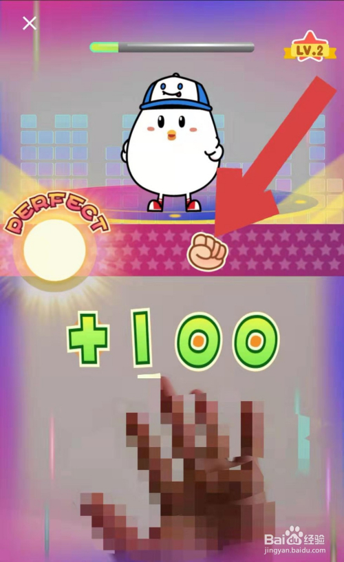 手保健操活动起头后,按照页面中给出的手势图标做出响应的手势,系统会给我们响应的分数,待音乐播放完后,系统会显示我们的总得分。