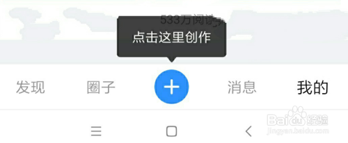 然后,我们打开美篇的本家儿界面,点击本家儿界面下方的【+】号,点击一下,如图所示: