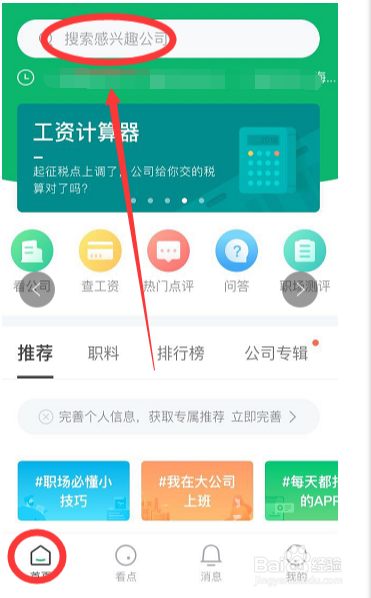 然后,在首页搜索框,输入想要领会的公司名称,点击搜刮