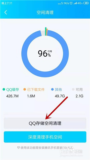 首先会扫描手机QQ的存储数据,竣事后点击【QQ存储空间清理】。