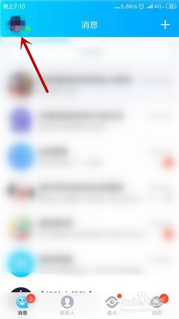 点击打开手机QQ,在手机QQ的动静界面里点击左上角的头像。