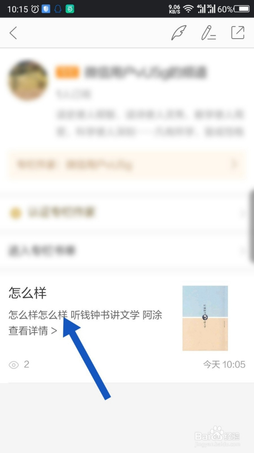 在打开的专栏里面,点击要删除的专栏内容。如图所示