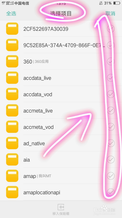 我们找到并选摘要移入保险箱的文件或文件夹,然后点击页面下方的移入保险箱选项即可;
