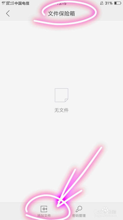 顿时,我们即可进入到文件保险箱页面,点击下方的添加文件选项;