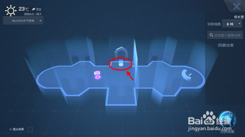 校长室的标识表记标帜较少,此处我们选择中心的这个点,这是校长室大门。