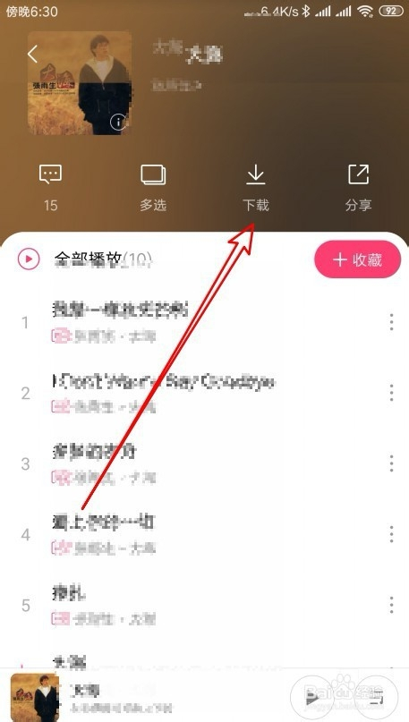 接下来再打开的专辑的列表中点击顶部的下载按钮