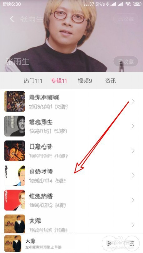 然后在打开的歌手详情页面中,我们点击专辑的选项卡