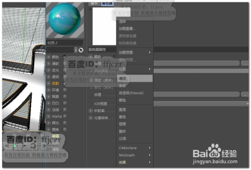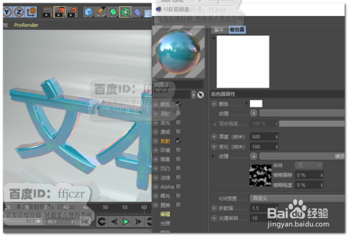 再次在反射通道中添加一个传统反射,在层颜色中添加结果中的薄膜;进入薄膜着色器,在厚度纹理中添加一个噪波结果。