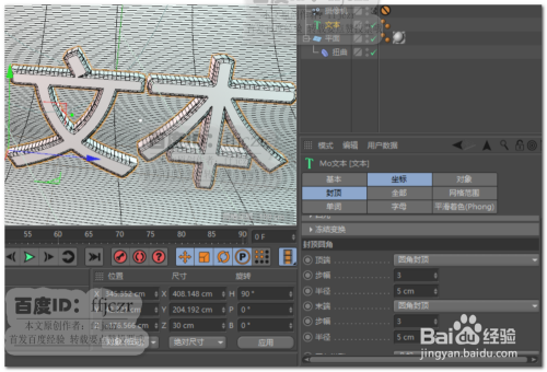 在地面建立一个文本,文本两头倒圆角;这里只做建立最简单的模子。