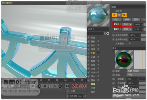 建立一个材质,在颜色通道中选择一种颜色作为模子的底色;在反射通道,将默认的高光去失落,添加一个传统反射层,在层遮罩项中添加夹杂度为60%的菲涅尔结果。反射强度调整到可以看到材质的底色。