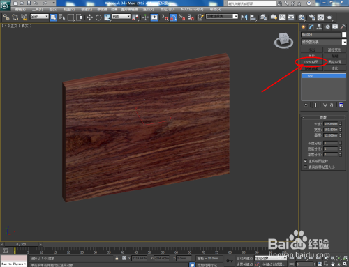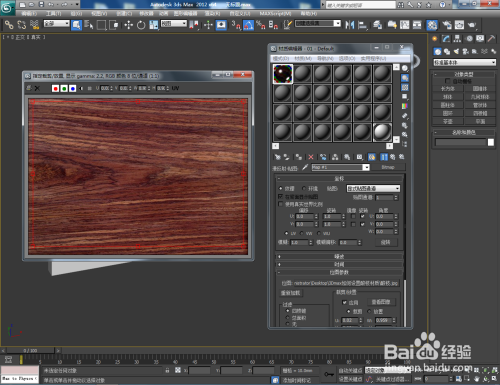点击【漫反射】右边的小方框,添加一张酸枝材质贴图。完当作后,将设置好的材质球附加给模子。选中模子,点击【UVW贴图】,按图示设置好UVW贴图的各个参数(如图所示);