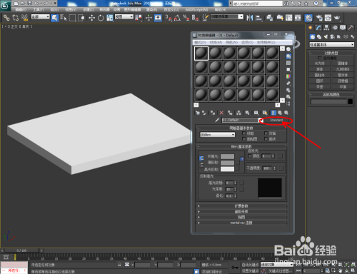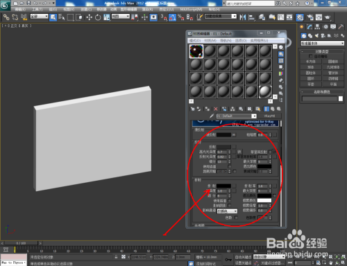 打开3Dmax2012软件,点击【建立】-【几何体】-【长方体】,在作图区域绘制一个长方体模子。点击【对象颜色】将模子的对象颜色设置为:白色;