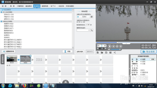 可以点窜左下角扭曲翻转特效转场的持续时候,直接爱输入框里输入持续时候即可