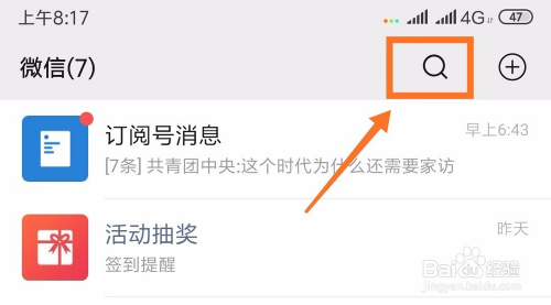 让你的微信老友打开微信,然后点击右上角的搜刮按钮,搜刮“微信团队”。