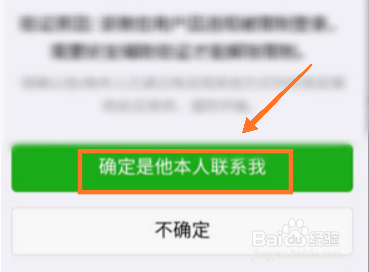 在如图所示的提醒框中选择“确定是他本人联系我。”