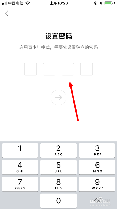 接下来就该去设置特定的青少年模式的密码了。鄙人面这个页面中,输入需要设置的密码。