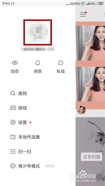 之后会在左侧呈现更多界面,此时我们需要点击顶部的快手头像。
