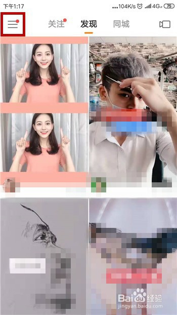 封闭和打开的方式其实差不多,打开手机中的快手后点击左上角的【三】。