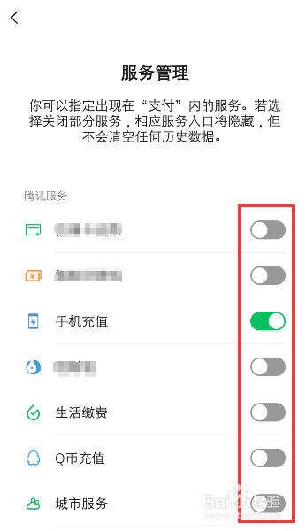 进入办事办理页面,点击你要封闭的商家办事功能的按钮,包罗腾讯办事,第三方办事。