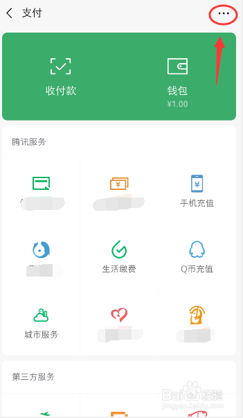 在支付页面,可以看到良多商家的办事功能,点击右上角的三个点,进入支付办理页面。