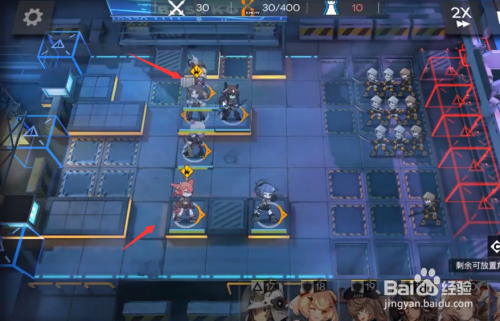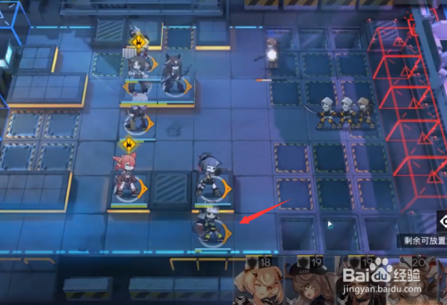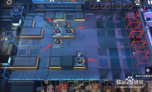 开局居中一个前锋,靠右两侧摆设两个狙击,左上角摆设一个群奶。