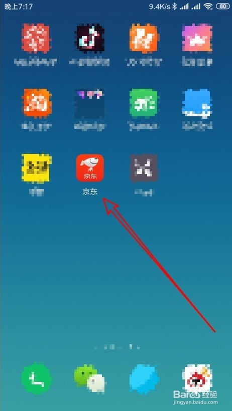首先我们在手机的屏幕上滑动,找到安装好的京东的图标
