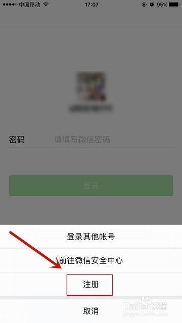 下载一个微信APP软件,打开微信,点击【注册】