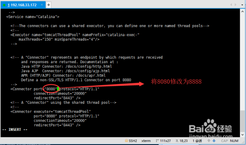 进入Tomcat安装目次conf文件夹下,点窜server.xml文件将默认的端口8080点窜为8888,如下图所示: