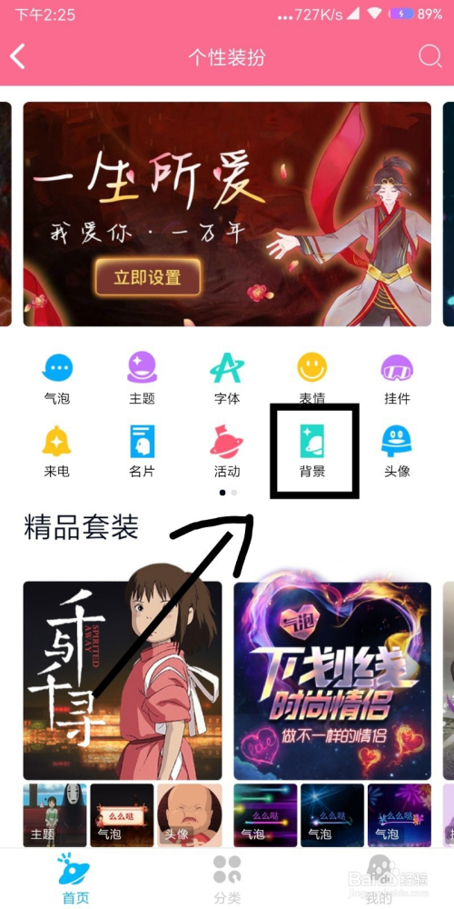 在个性装扮里找到布景,然后打开它