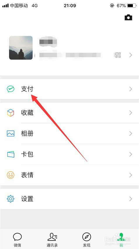 进入微信小我中间之后,选择此中的“支付”,如图所示。