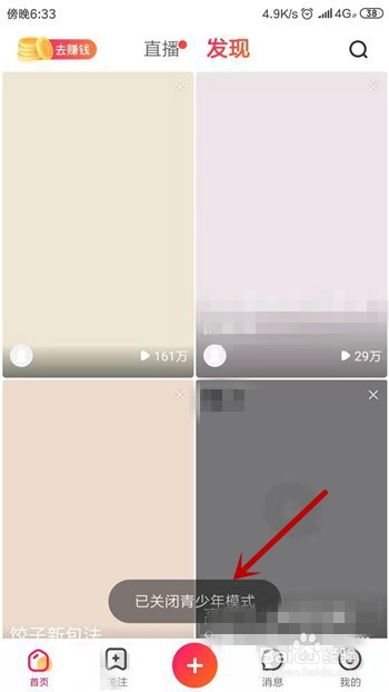 想要封闭青少年模式只需要知道设置时的密码即可,点击打开全平易近小视频。