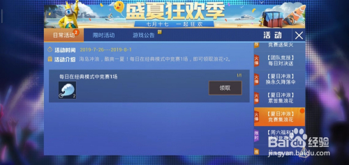 除了签到外,我们还可以经由过程介入游戏获得,点击【夏季冲浪】竞赛集浪花;