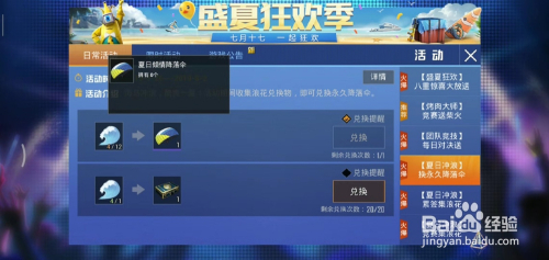 当我们集齐12朵浪花,回到【夏季冲浪】换永远下降伞,按照浪花我们就能兑换。