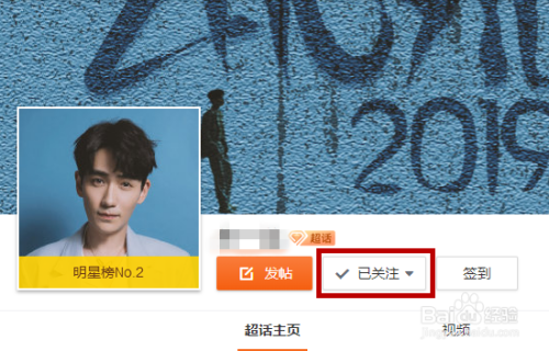 进入到超话的首页后可看到【已存眷】,点击后方的下拉三角按钮。