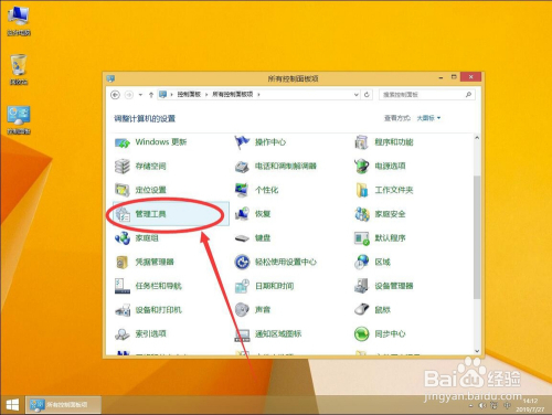 然后在节制面板列表中,找到“办理东西”并点击打开