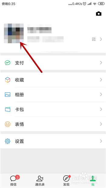 在微信的小我中间上方是我们的账号头像,点击我们的微信头像。