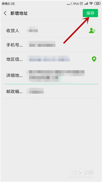 然后就是收货地址的填写,需要填写姓名、手机号以及地址,填好后点击【保留】。