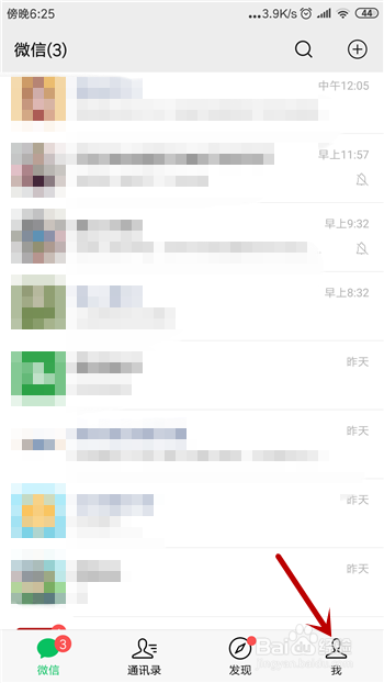 可以摄影或者直接选用手机相册的图片作为聊天布景,在微信里点击【我】。