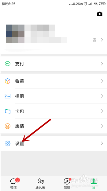 我们需要在微信的小我中间界面中点击打开【设置】,如图所示。
