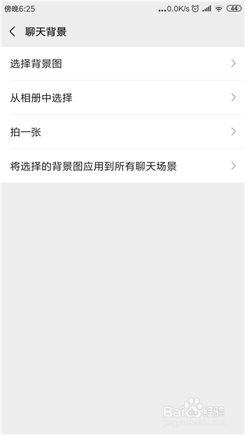 我们需要选择一个聊天布景图片的体例,可所以摄影表或者从相册选择。